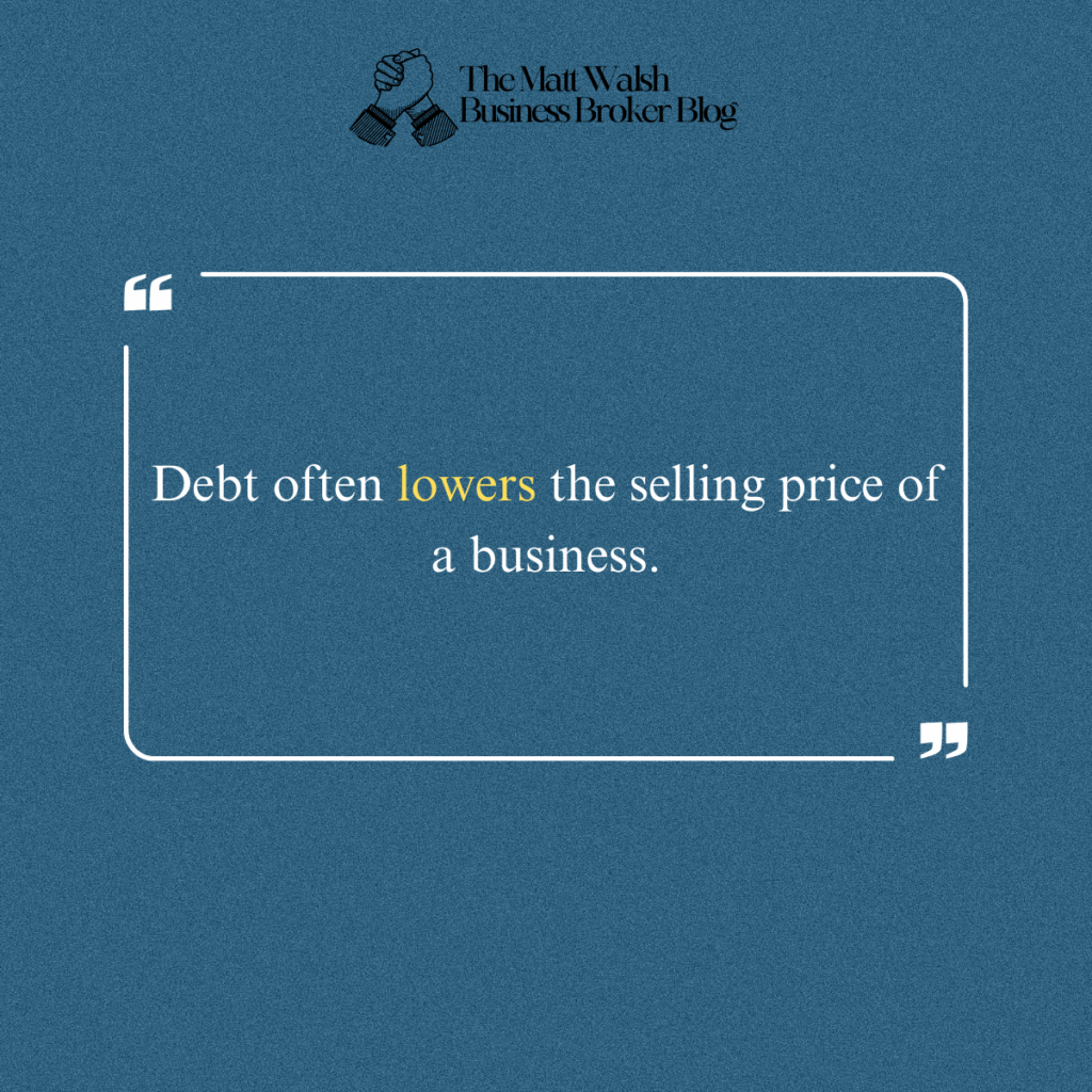 Debt often lowers the selling price of a business. This is because debt reduces profit. When a buyer looks at a business, they want to see how much money it makes after all bills are paid. If a big part of the income goes toward debt payments, the business looks less valuable.