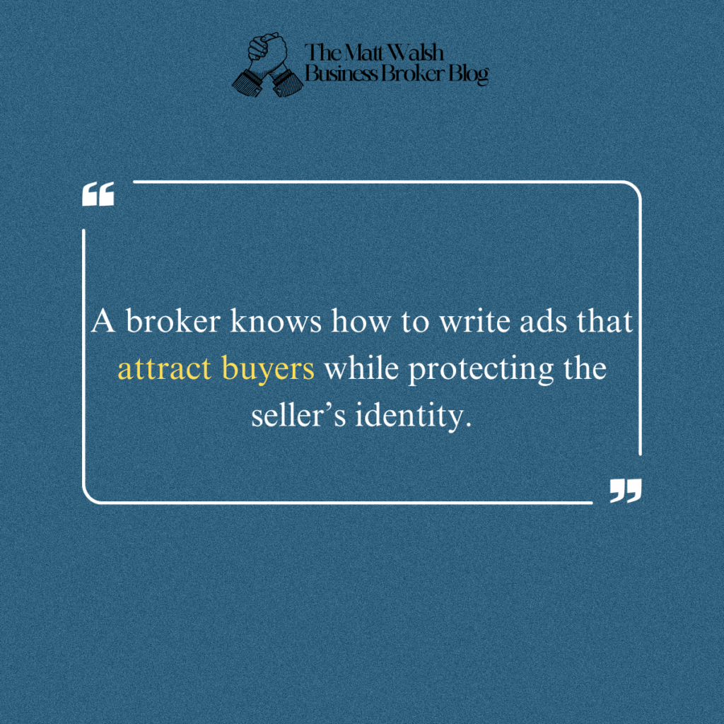 Some owners choose to write and post their own ad. But many others work with a business broker. A broker knows how to write ads that attract buyers while protecting the seller’s identity. They also screen buyers, schedule meetings, and guide both sides through the sale process.