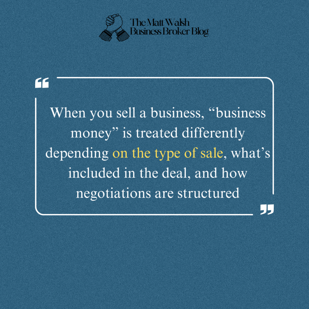 When you sell a business, “business money” is treated differently depending on the type of sale, what’s included in the deal, and how negotiations are structured. Some funds belong to the seller, some stay with the business, and some are used to settle debts or financial obligations before closing.